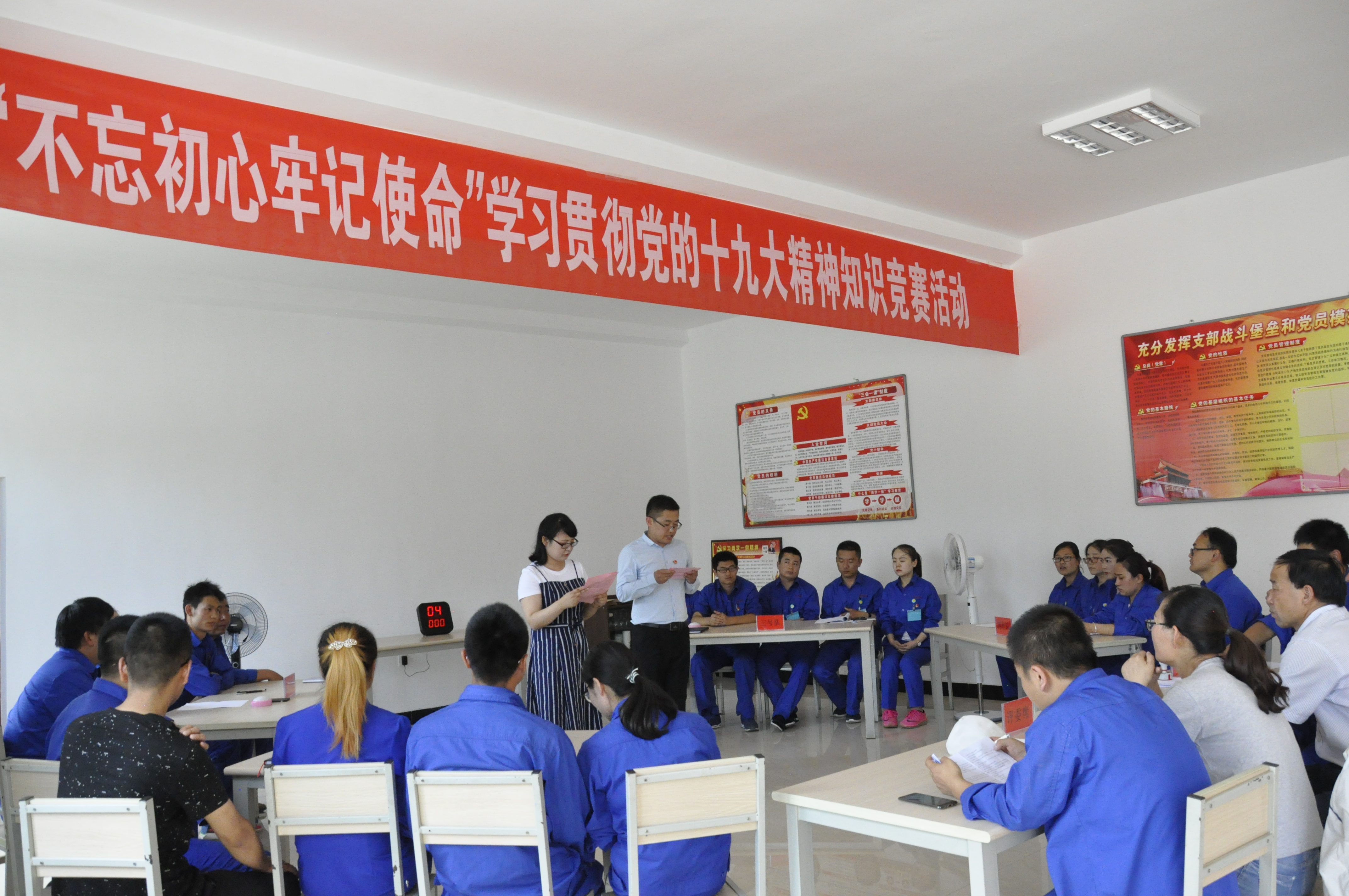 為紀念中國共產(chǎn)黨成立97周年,加強黨的基層組織建設(shè),提升黨員黨性修養(yǎng),7月19日,以“不忘初心 牢記使命”學(xué)習(xí)貫徹黨的十九大精神為主題的知識競賽在公司黨員活動室舉辦, 第一黨支部全體黨員、入黨積極分子和部分群眾出席并參與了競賽。此次競賽由第一黨支部主辦,黨群工作部協(xié)辦。