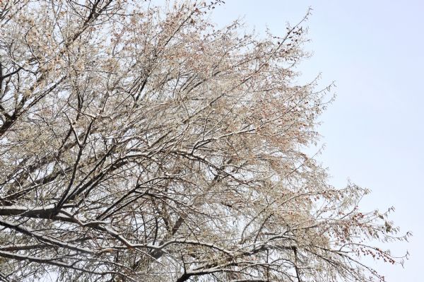 冬雪,為尚未落去的柳葉掛上晶瑩;為常青的松柏蓋上棉被。一切都顯得恬靜、素雅,唯一能聽到的便是咯吱作響的腳步聲,并不吵鬧,卻為這寒冷、靜謐的清晨增添了一份樂趣。