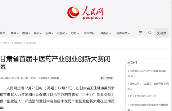 多家媒體爭相報道,“甘肅普安制藥股份有限公司榮獲甘肅省首屆中醫(yī)藥產(chǎn)業(yè)創(chuàng)業(yè)創(chuàng)新大賽創(chuàng)新組第一”強勢霸屏