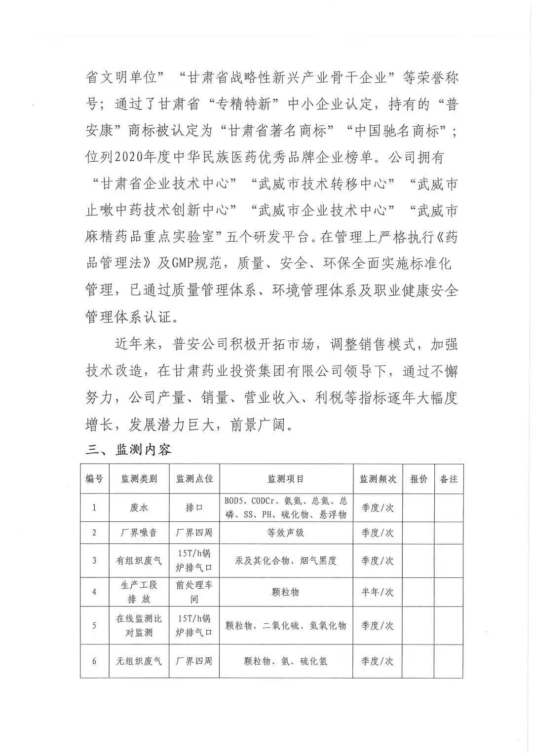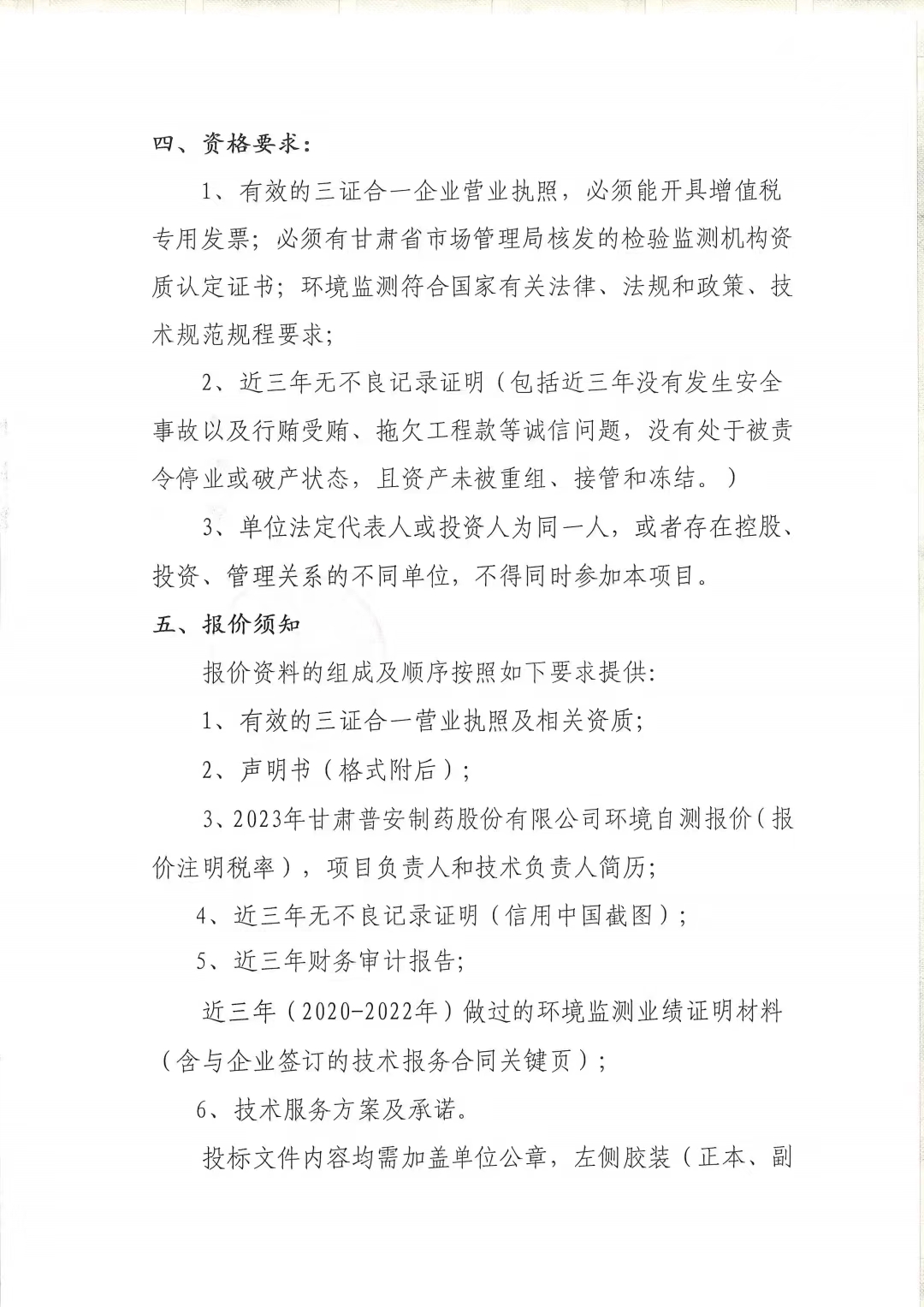 甘肅普安制藥股份有限公司2023年度環(huán)境自測第三方委托招標公告