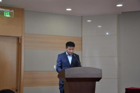 會議在莊嚴的國歌聲中拉開帷幕。公司班組長及以上管理人員、工程技術人員、員工代表、營銷中心和職能科室全體人員、受表彰人員參加了會議。