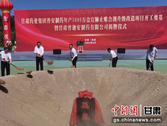6月15日,在武威市涼州區(qū)舉行了甘肅藥業(yè)集團(tuán)普安制藥年產(chǎn)5000萬盒(3億支)宣肺止嗽合劑升級(jí)改造項(xiàng)目開工奠基暨甘肅普迪安制藥有限公司成立揭牌儀式。