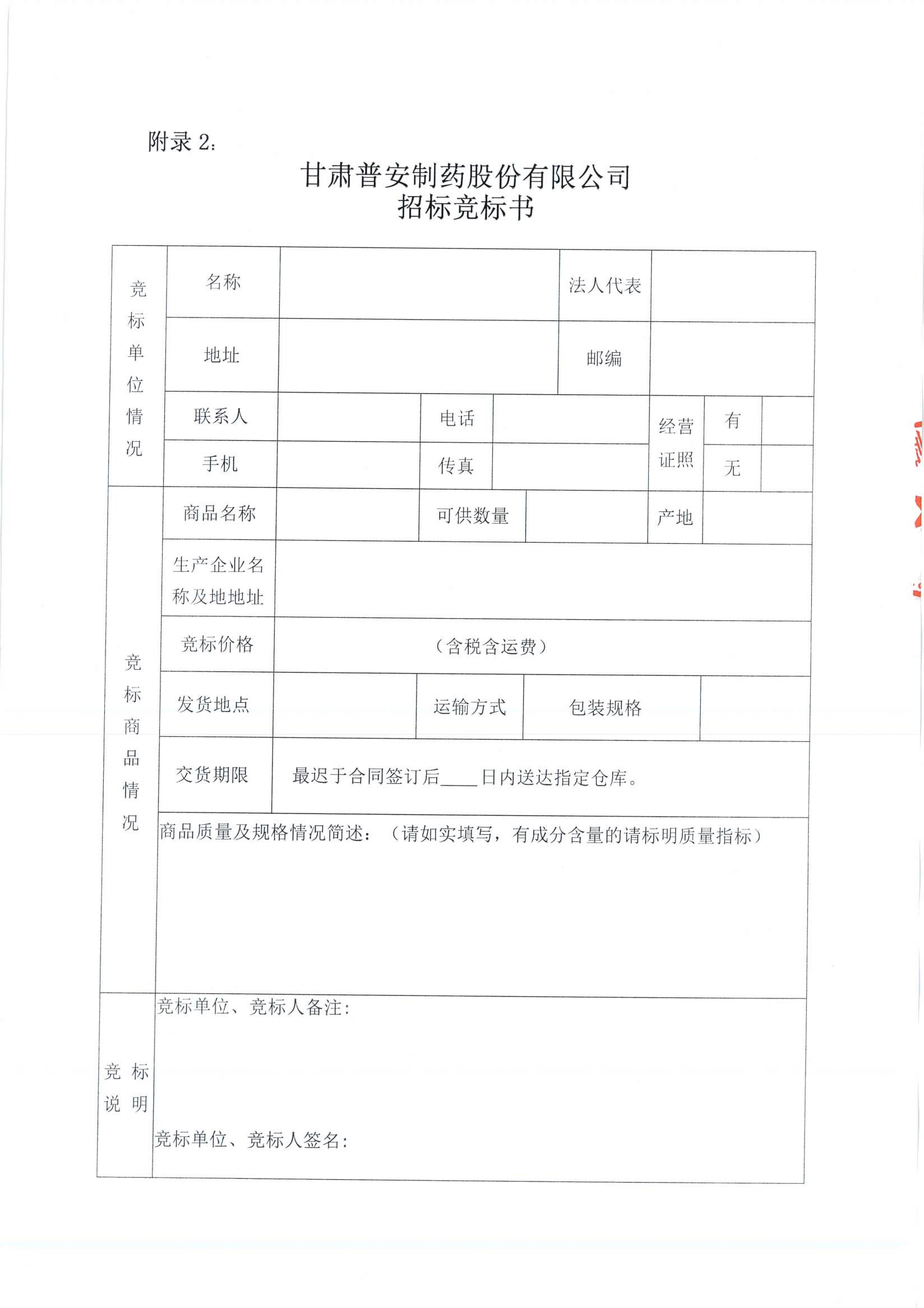 甘肅普安制藥股份有限公司2022年10月-2023年10月中藥材招標(biāo)采購公告