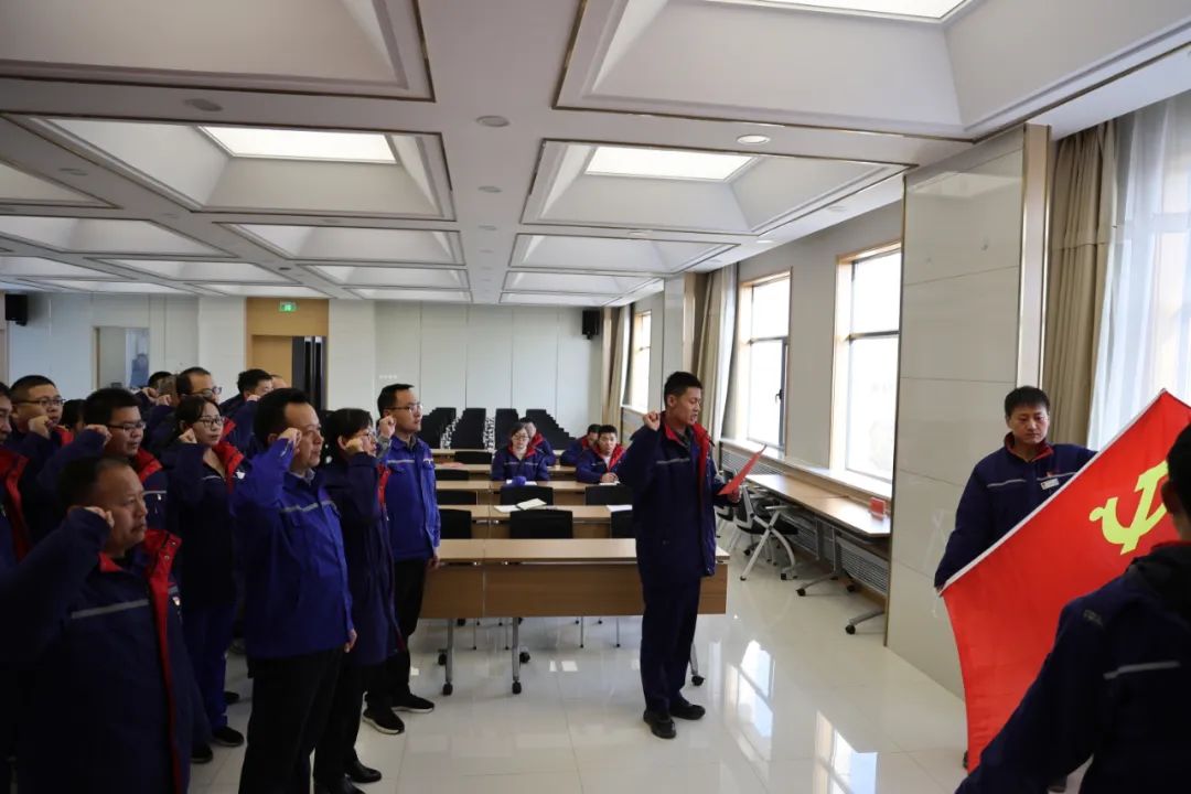 大會在莊嚴(yán)的國歌聲中拉開帷幕,全體黨員面向鮮紅的黨旗,重溫入黨誓詞并莊嚴(yán)宣誓。