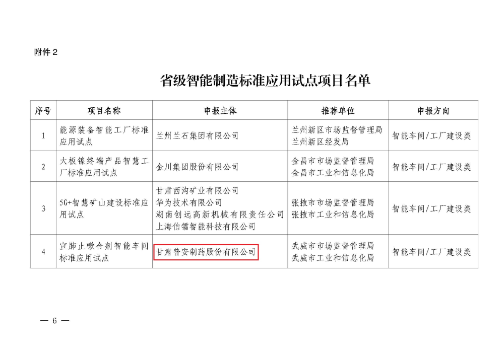 “三抓三促”踐行中 ᅵ 【喜報】甘肅藥業(yè)集團(tuán)普安制藥入選省級智能制造標(biāo)準(zhǔn)應(yīng)用試點(diǎn)項目名單