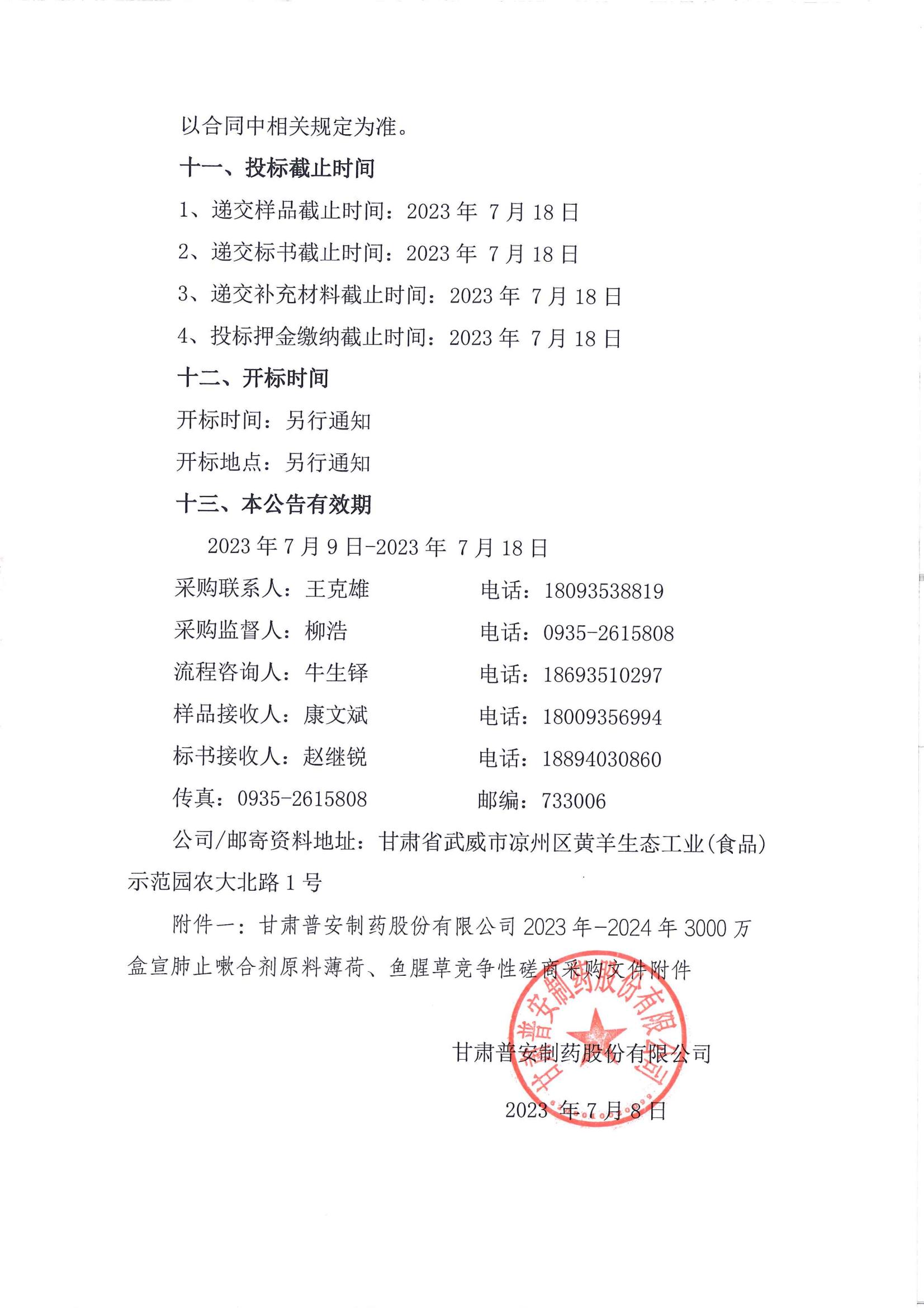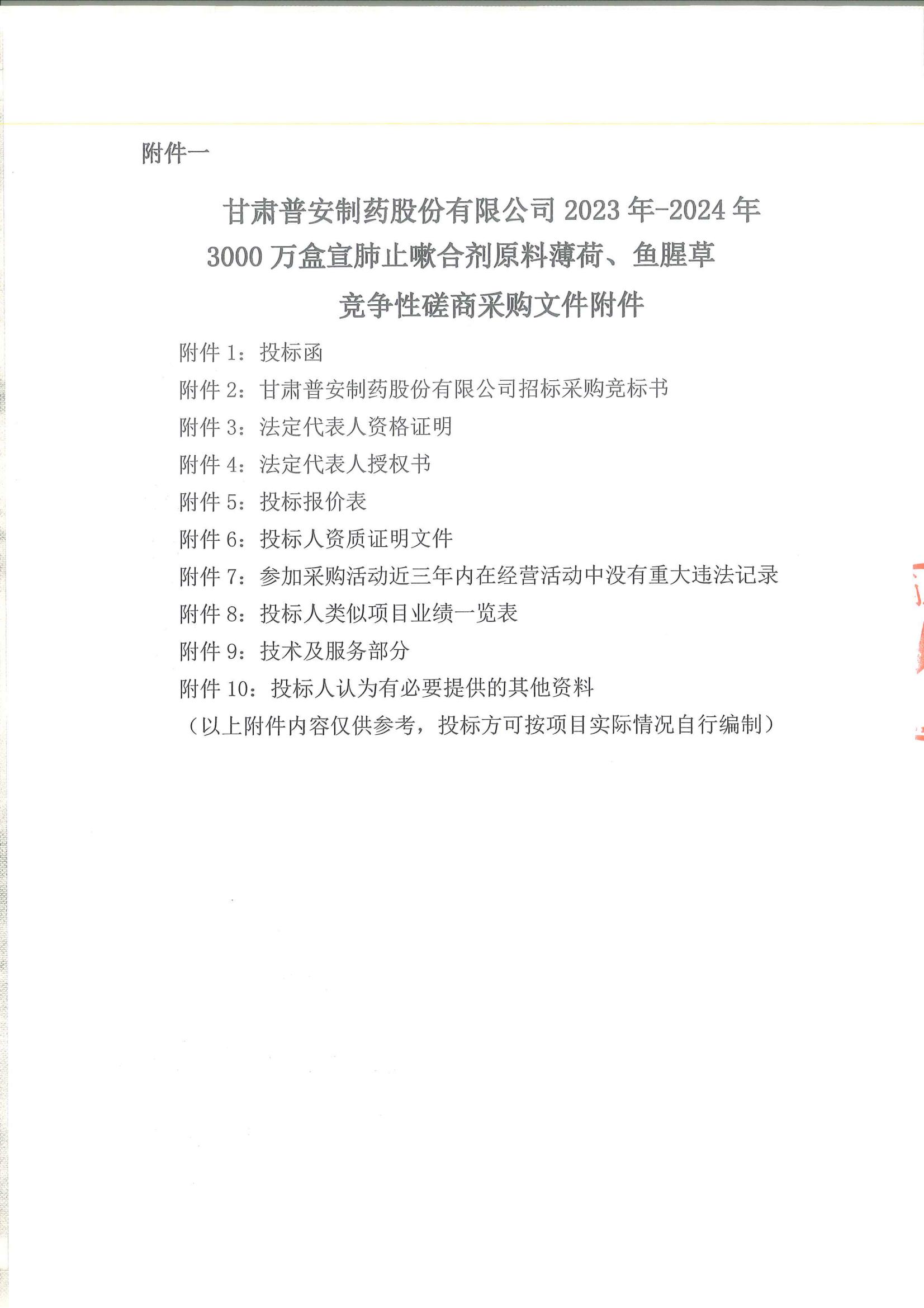 甘肅普安制藥股份有限公司2023年—2024年3000萬盒宣肺止嗽合劑原料薄荷、魚腥草采購競(jìng)爭(zhēng)性磋商公告
