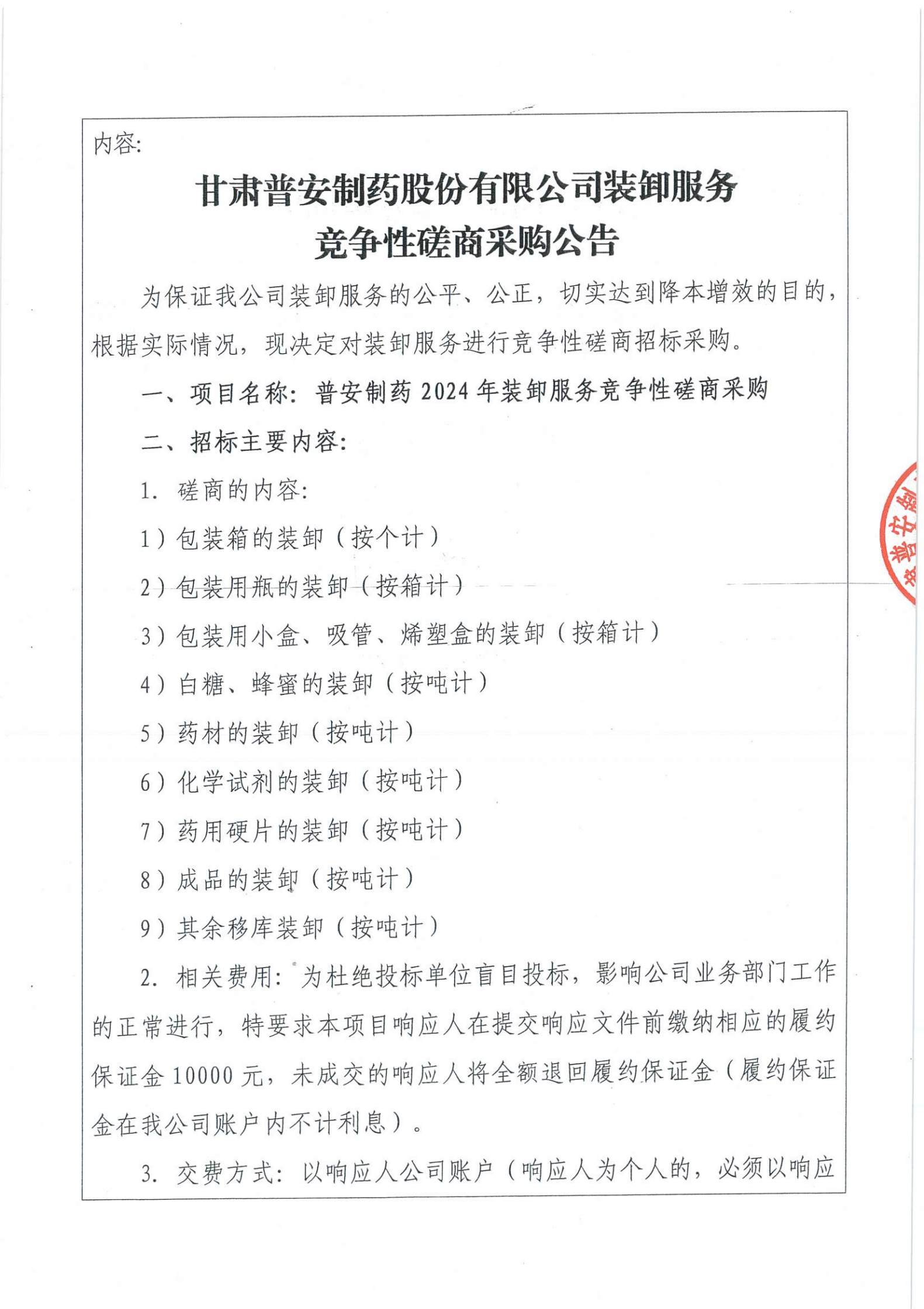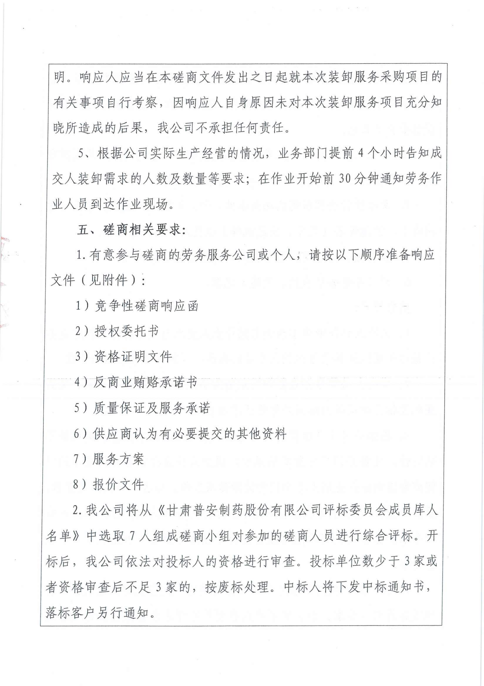 甘肅普安制藥股份有限公司裝卸服務(wù)競(jìng)爭(zhēng)性磋商采購(gòu)公告