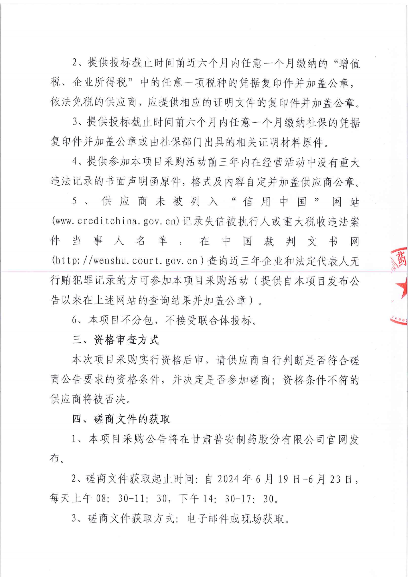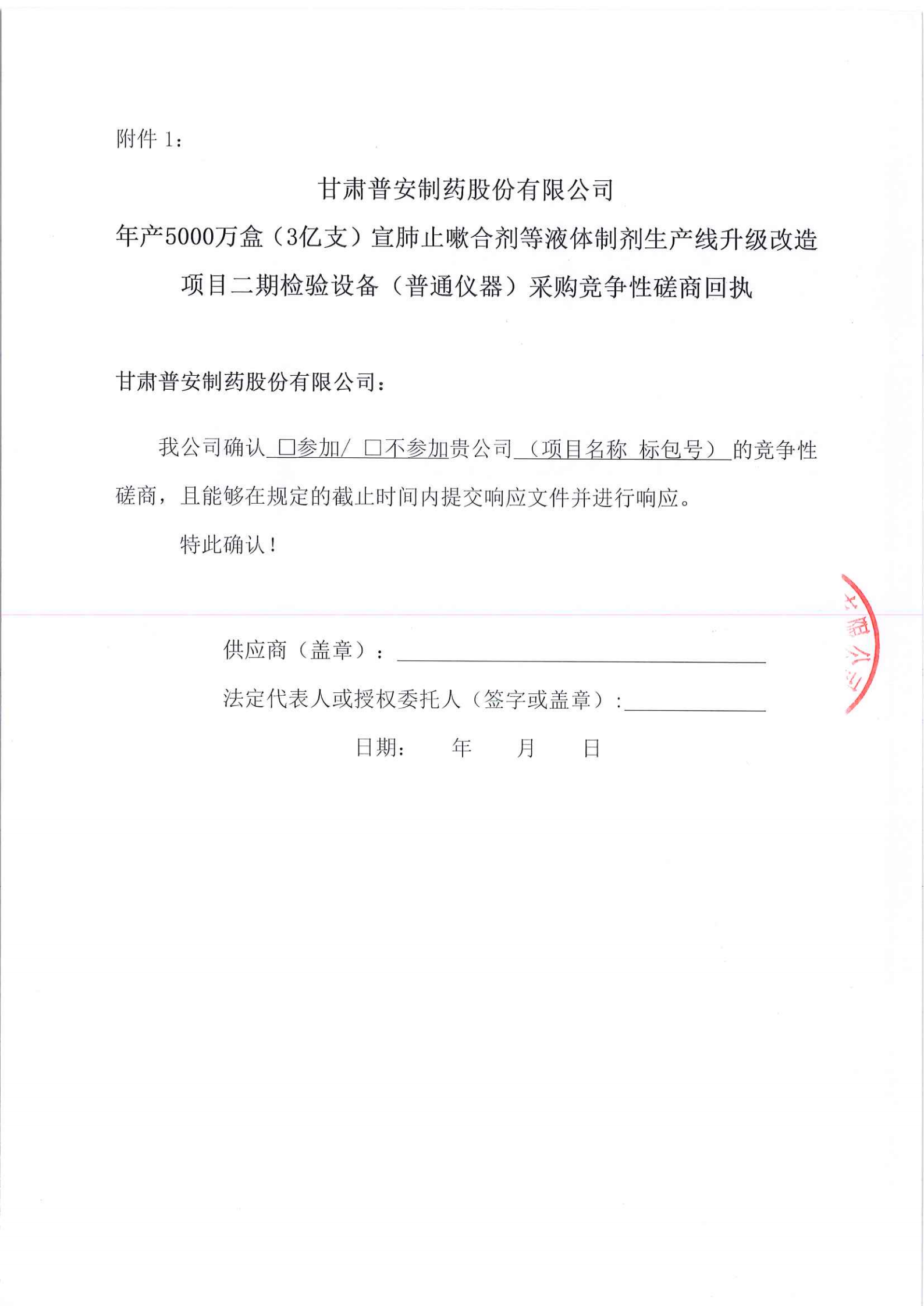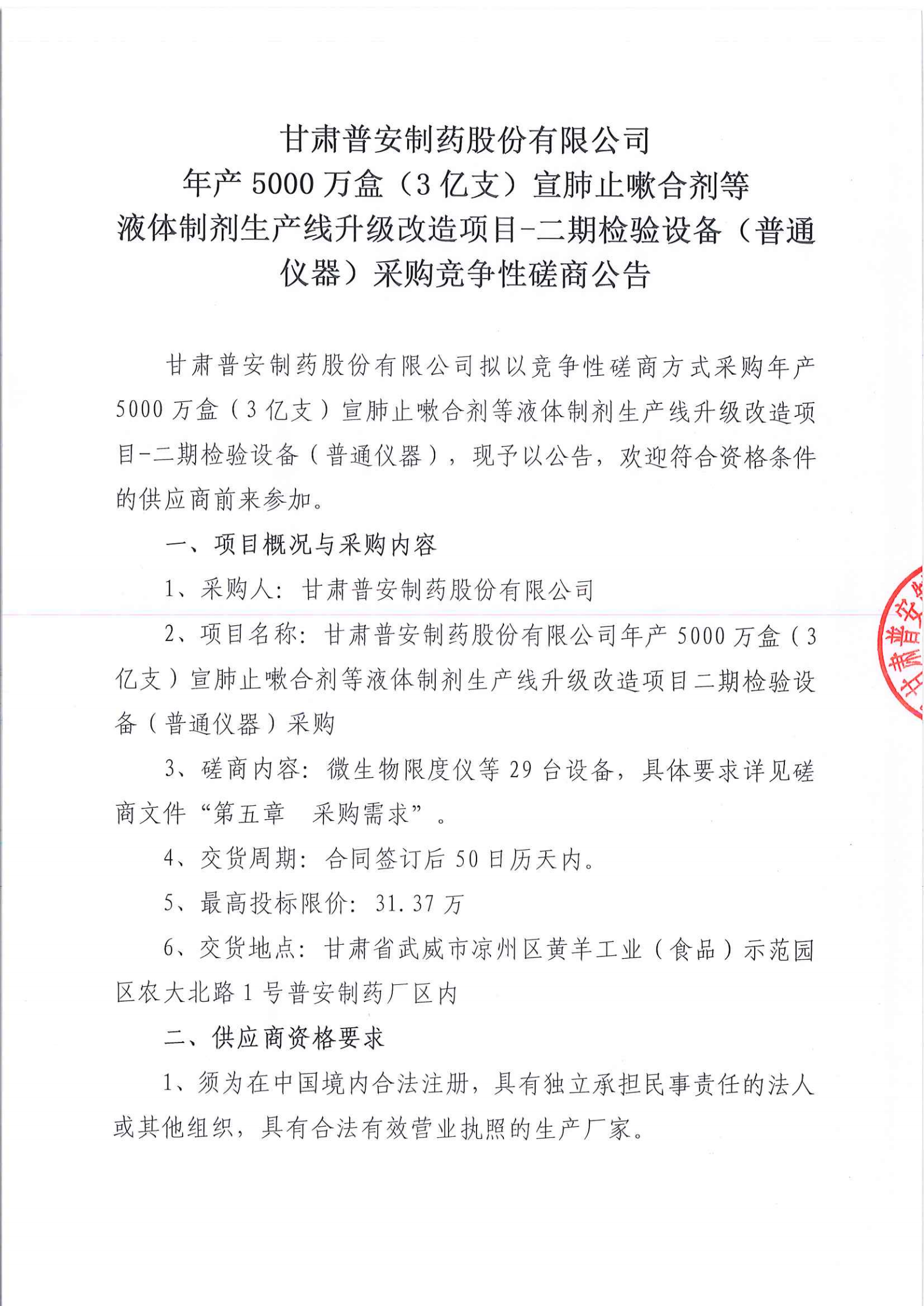 甘肅普安制藥股份有限公司年產(chǎn)5000萬盒(3億支)宣肺止嗽合劑等液體制劑生產(chǎn)線升級改造項目二期檢驗設備(普通儀器)采購競爭性磋商公告