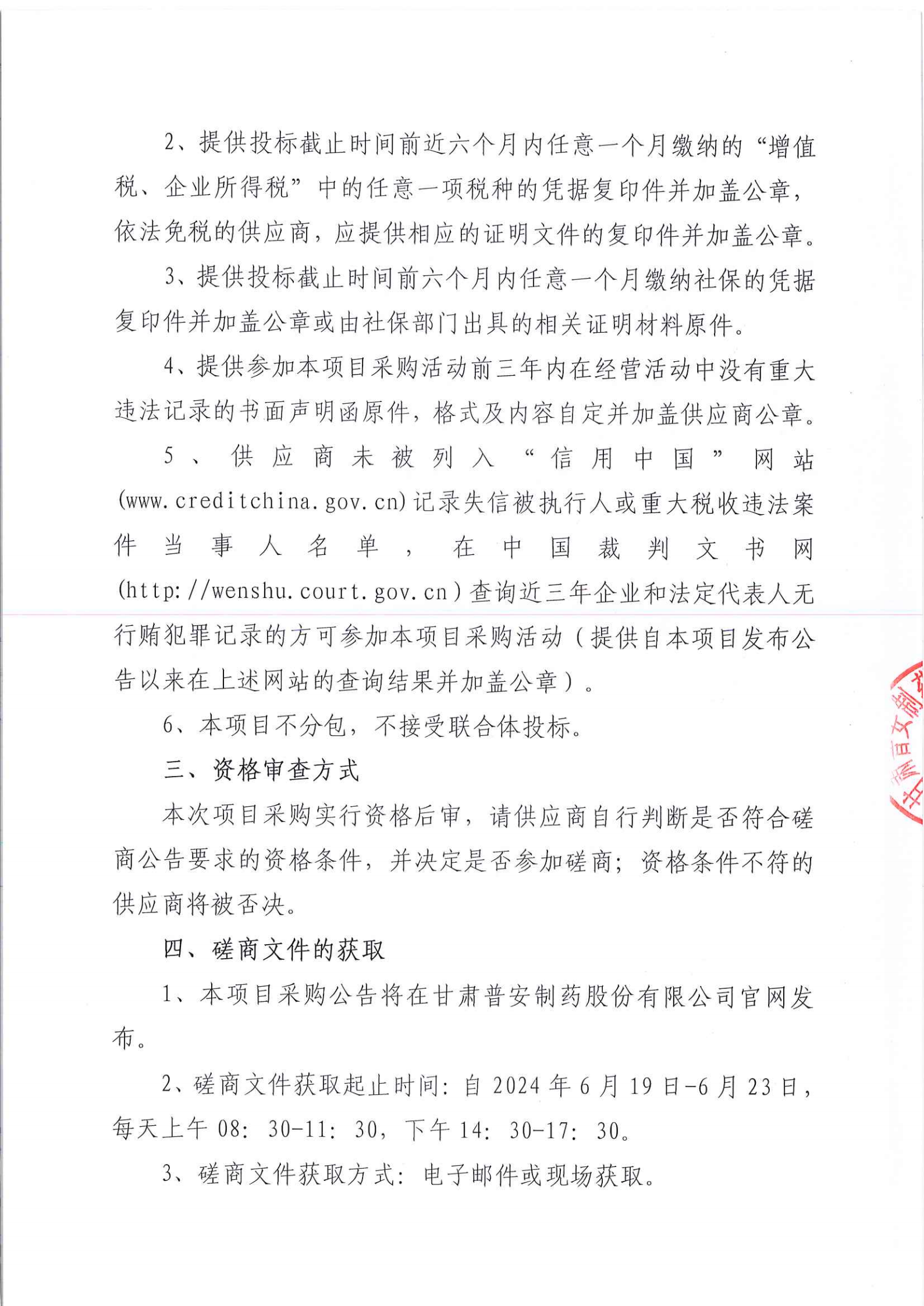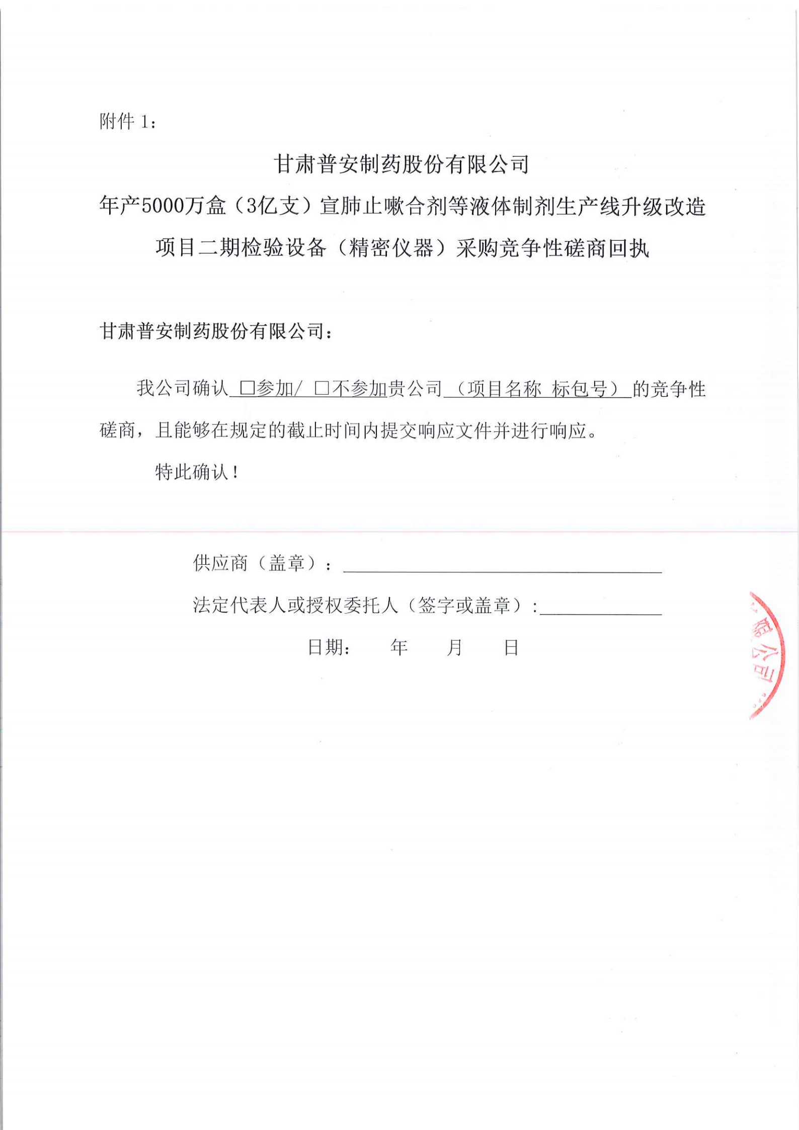 甘肅普安制藥股份有限公司年產(chǎn)5000萬盒(3億支)宣肺止嗽合劑等液體制劑生產(chǎn)線升級改造項目二期檢驗設備(精密儀器)采購競爭性磋商公告