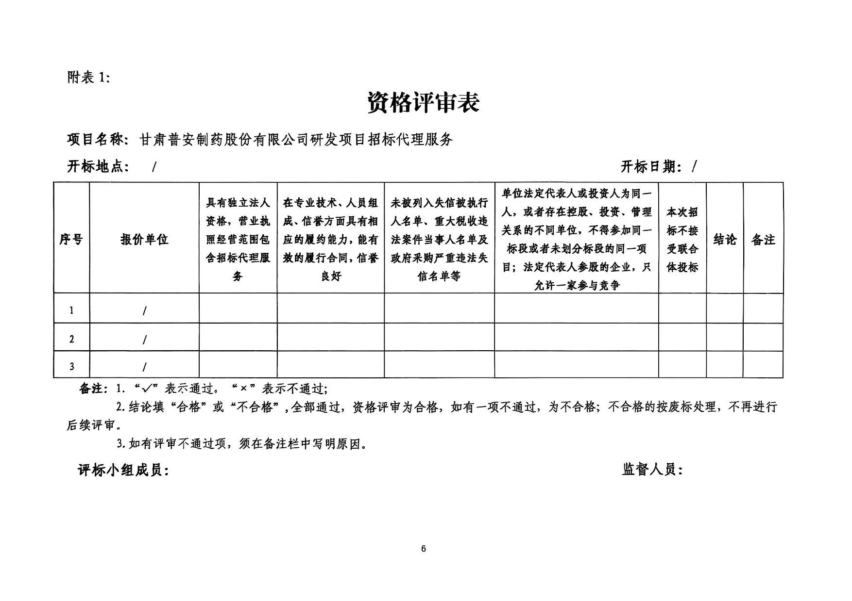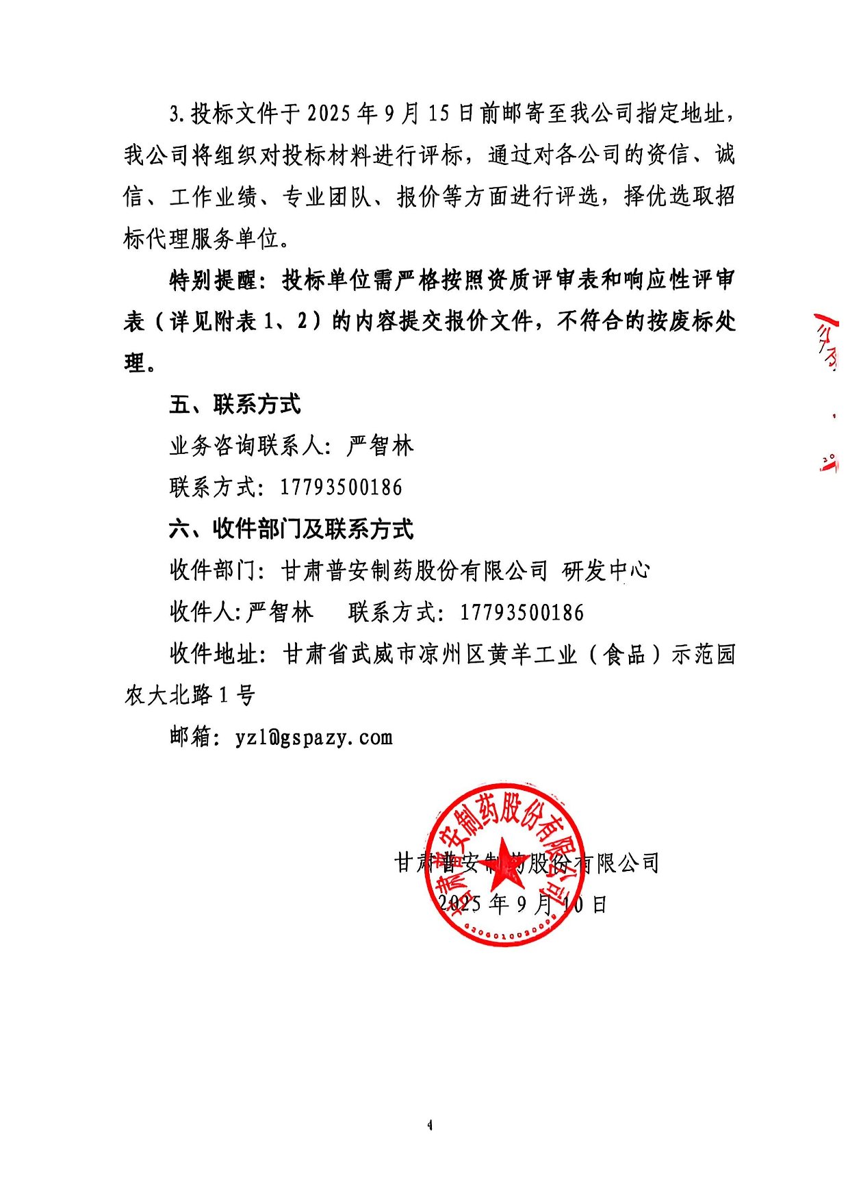 甘肅普安制藥股份有限公司研發(fā)項(xiàng)目招標(biāo)代理服務(wù)招標(biāo)公告