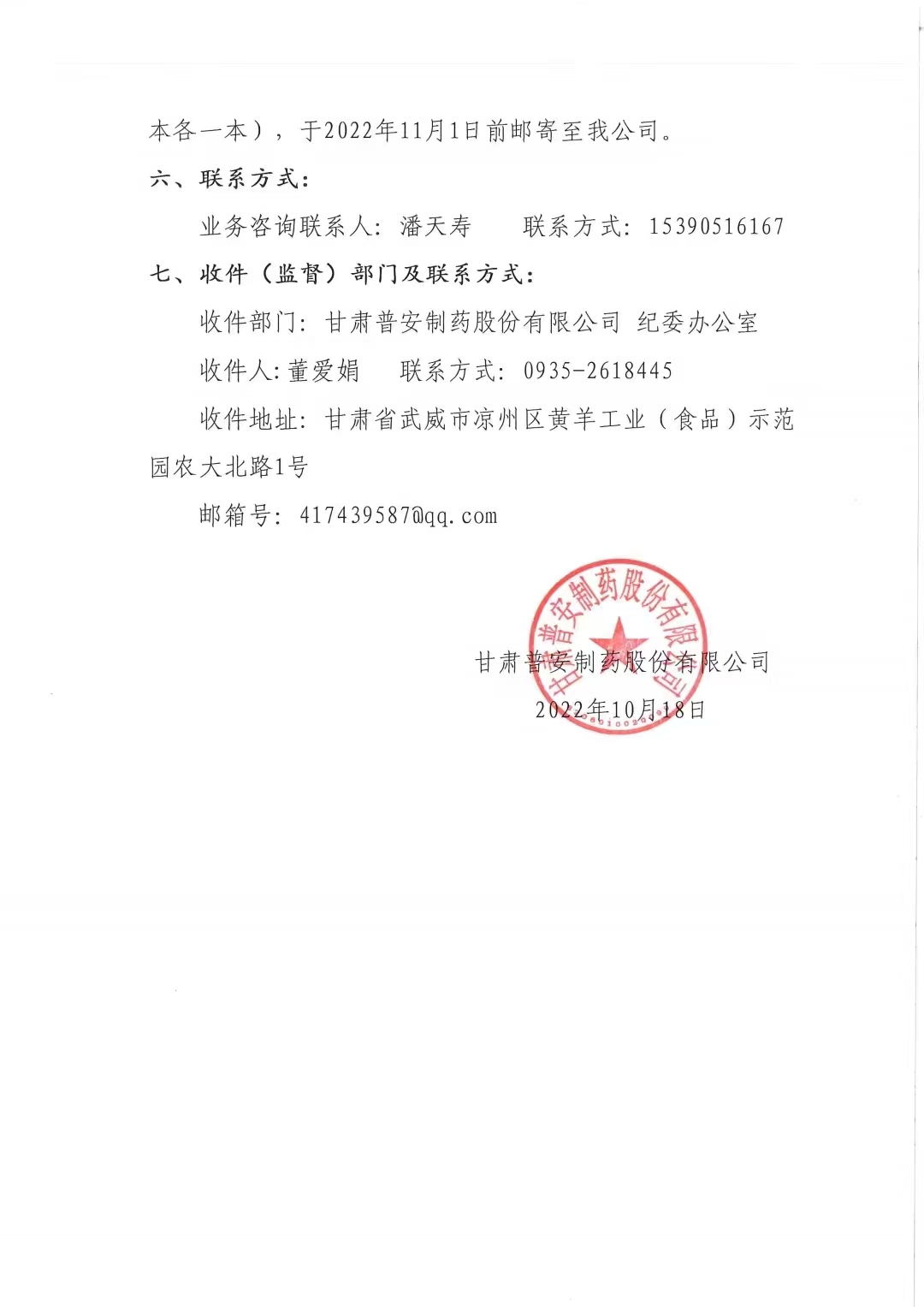 甘肅普安制藥股份有限公司2023年度環(huán)境自測第三方委托招標公告
