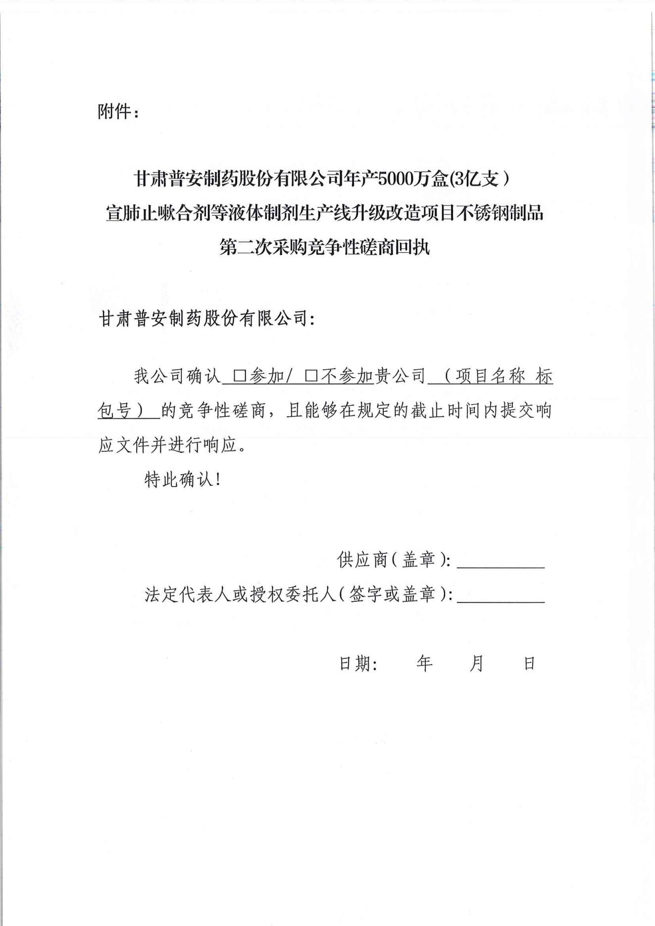 甘肅普安制藥股份有限公司年產(chǎn)5000萬盒(3億支)宣肺止嗽合劑等液體制劑生產(chǎn)線升級改造項(xiàng)目不銹鋼制品第二次采購競爭性磋商公告