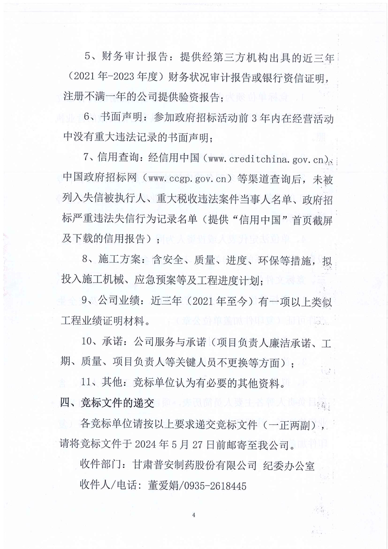 甘肅普安制藥股份有限公司2024年基礎(chǔ)設(shè)施改造項目-舊污水站設(shè)備設(shè)施及廠房拆除工程競爭性磋商公告