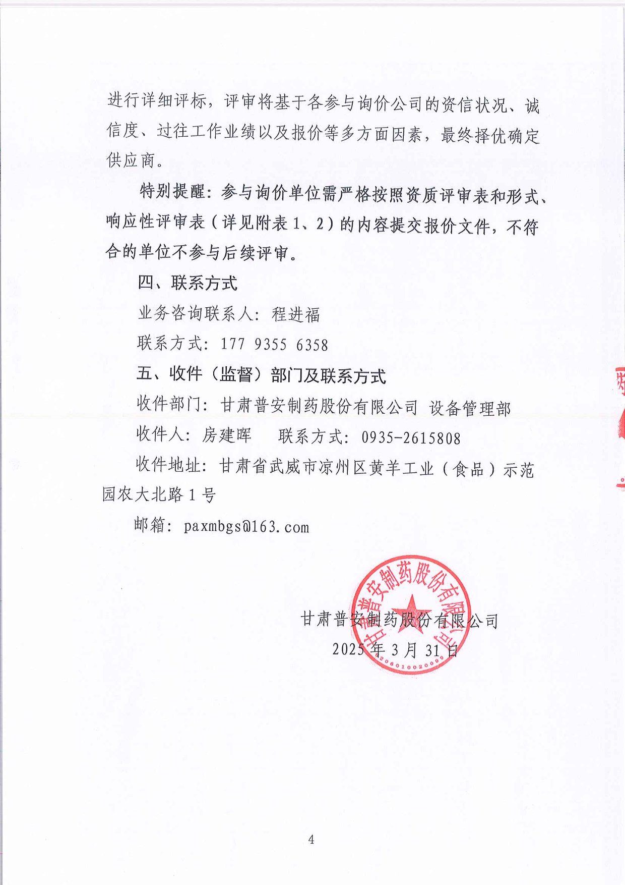 甘肅普安制藥股份有限公司兩化融合貫標(biāo)咨詢及認(rèn)證服務(wù)詢價公告