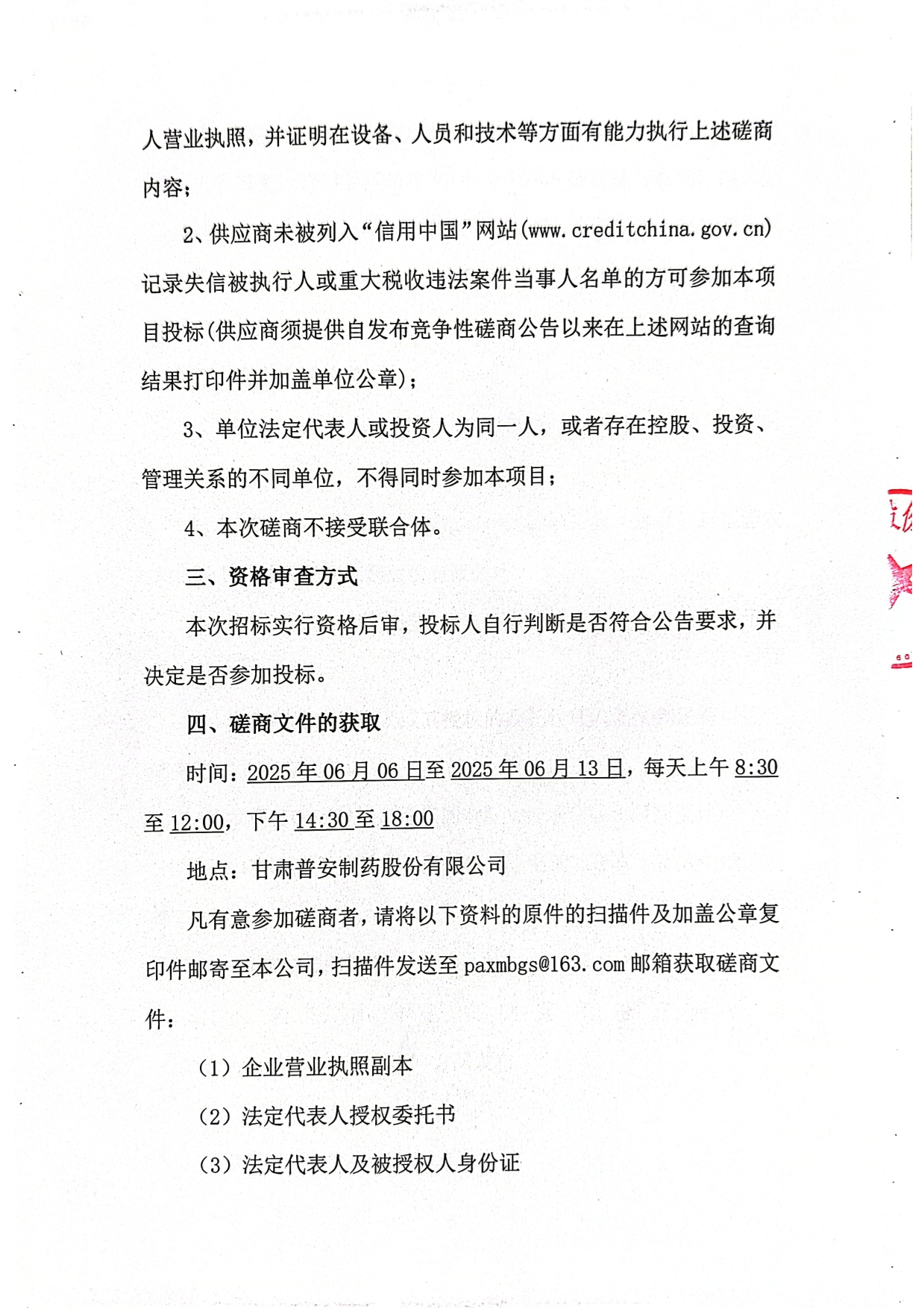 甘肅普安制藥股份有限公司2臺15噸燃煤蒸汽鍋爐外包運營服務競爭性磋商公告